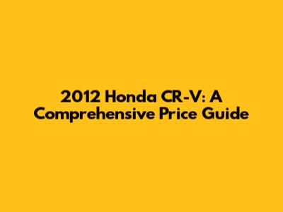 Understanding the 2012 Honda CR-V's Price Range