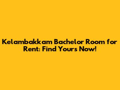 Bachelor Room For Rent In Kelambakkam: Find Yours Now!