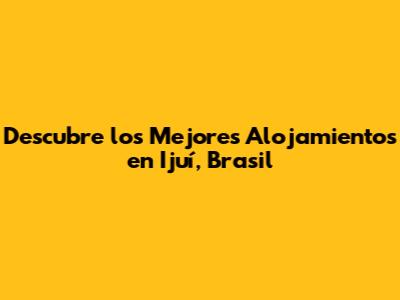 ¡Hola, gente! Si estás planeando un viaje a Ijuí, Brasil, y necesitas un lugar donde quedarte, ¡estás en el lugar correcto! En este artículo, te guiaré a través de las opciones más destacadas de alojamientos en Ijuí, Brasil, para que puedas encontrar el lugar perfecto que se adapte a tus necesidades y presupuesto. Desde hoteles acogedores hasta apartamentos modernos y posadas encantadoras, Ijuí tiene algo para todos. Prepárense para explorar las mejores opciones y descubrir cómo hacer de tu estancia una experiencia inolvidable. ¡Vamos a ello!