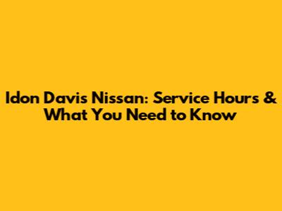 Idon Davis Nissan Service Hours: Your Quick Guide