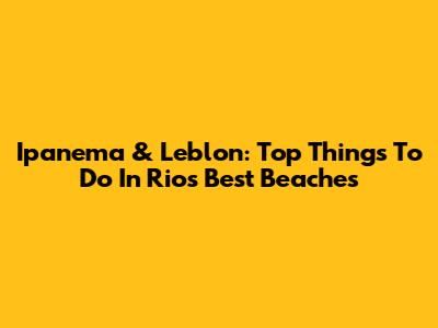 Ipanema & Leblon: Top Things To Do In Rio's Best Beaches