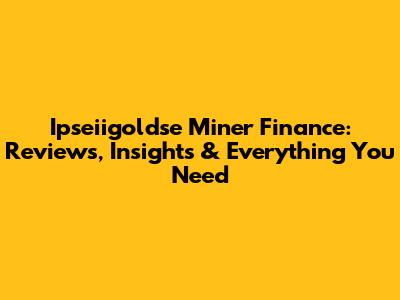 Ipseiigoldse Miner Finance: Reviews, Insights & Everything You Need