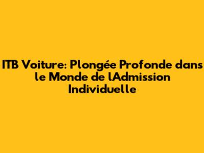 ITB Voiture: Le Guide Ultime Pour Comprendre Et Maîtriser