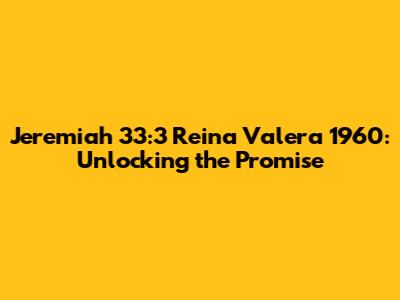 Hey guys! Today, we're diving deep into one of the most powerful verses in the Bible: Jeremiah 33:3. This verse, part of the Reina Valera 1960 translation, holds a special promise and invitation. We're going to break it down, explore its meaning, and see how it applies to our lives today. So, grab your Bibles (or your favorite Bible app) and let's get started!