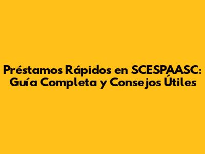 Préstamos Rápidos En SCESPAASC: Guía Completa Y Consejos Útiles