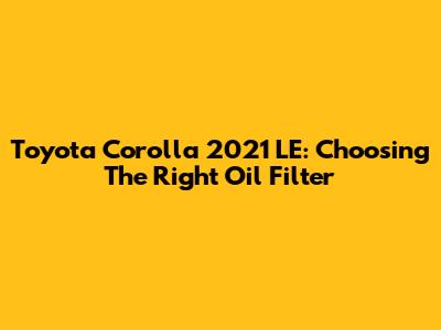 Toyota Corolla 2021 LE: Choosing The Right Oil Filter