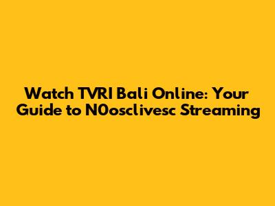Watch TVRI Bali Online: Your Guide To N0osclivesc Streaming